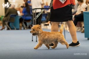 Bei der Ausstellung selber habe ich natürlich im Vorfeld überlegt wo ich meine Hunde auf dem internationalen Parkett einzuordnen habe. 142 gemeldete Cairns aus aller Welt. Dabei die großen, namhaften Kennels aus Skandinavien. Das oberste Ziel war mit allen 3 gemeldeten Hunden ein Vorzüglich zu bekommen. Das war an diesem Tag gar nicht so selbstverständlich. Der Richter war mit seinen Bewertungen sehr wählerisch und so hagelte es die Bewertung “Sehr Gut”. Fiete wollte ich in der Zwischenklasse gerne von 8 Rüden in der Platzierung sehen. Voila – V4 Perfekt! Bei Salü lagen die Erwartungen niedriger -an die 30 Rüden in der Championklasse…Ich wollte bitte nicht als erstes raus fliegen und mein Vorzüglich haben. Salü war der Hammer! Er hat sich so toll gezeigt! Das V war gesetzt und er kam unter die besten 8 Rüden aus der Klasse!! Mega!! Dottie bekam in der Championklasse bei den ca 20 Mädels ebenfalls ein V. Damit war ich sehr zufrieden. Dottie hat sich nicht so schön gezeigt wie sie es sonst kann.